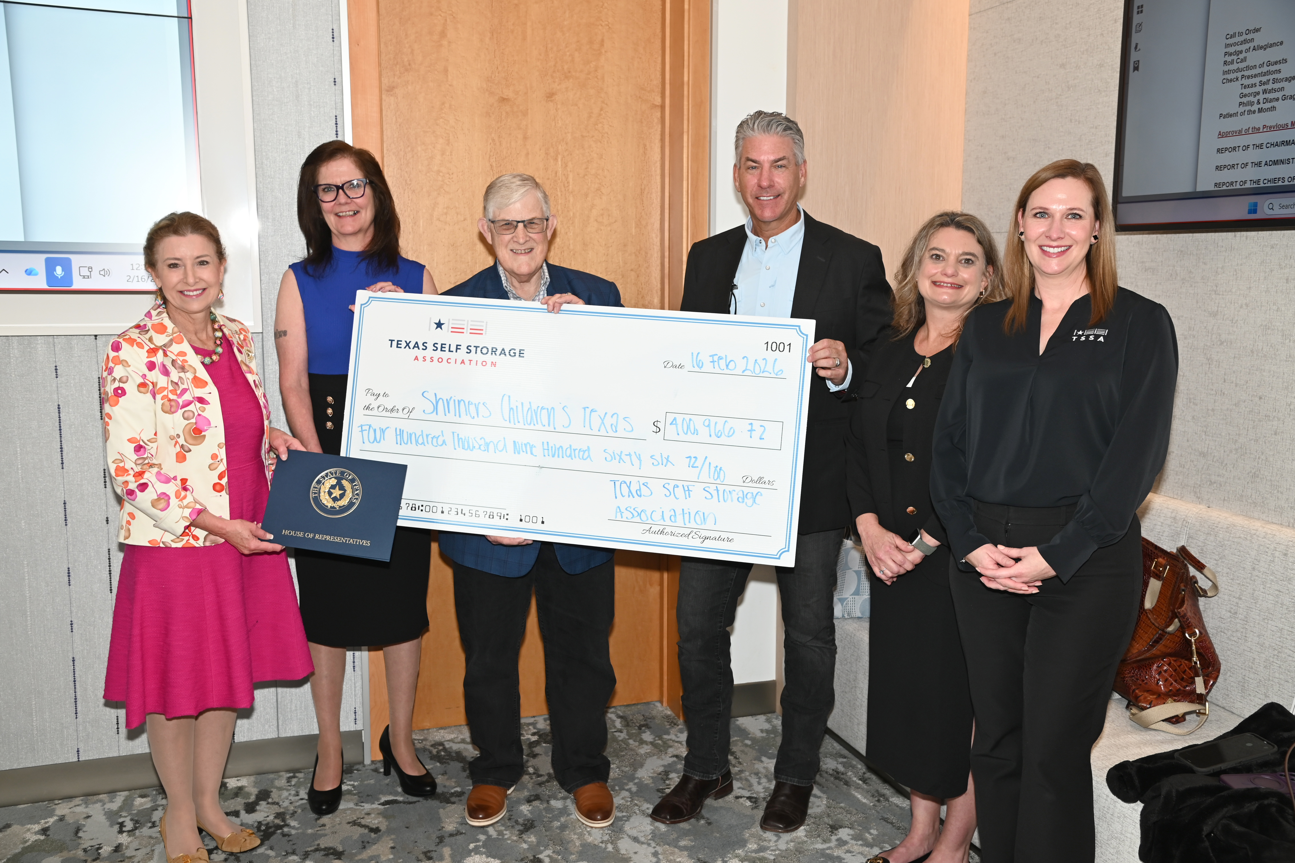 Texas Self Storage Association (TSSA), the largest state self-storage association in the nation, announced that it has surpassed $3 million in lifetime donations to Shriners Children’s Texas, marking a major milestone in the association’s ongoing support for children and families in need. This year alone, TSSA members raised more than $400,000, and association representatives recently visited the Galveston hospital to take a tour and present the check for 2025 fundraising efforts.